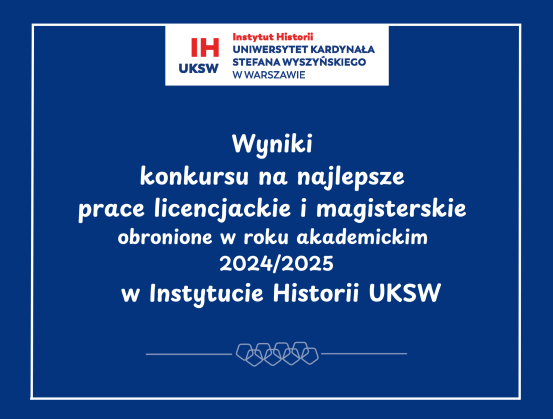 Dnia 24 listopada 2025 r.  jury konkursu  na najlepsze prace licencjackie i magisterskie obronione w roku akademickim 2024/2025 w Instytucie Historii UKSW w składzie:  ks. prof. dr hab. Waldemar Graczyk – Przewodniczący Jury Konkursu, ks. prof. dr hab. Wojciech Zawadzki, prof. dr hab. Jolanta M. Marszalska, ks. prof. dr hab. Leszek Misiarczyk, prof. ucz. dr hab.  Artur Górak,  ks. prof. ucz. dr hab. Dominik Zamiatała, prof. dr hab. Czesław Grajewski, wyłoniło laureatów konkursu:
