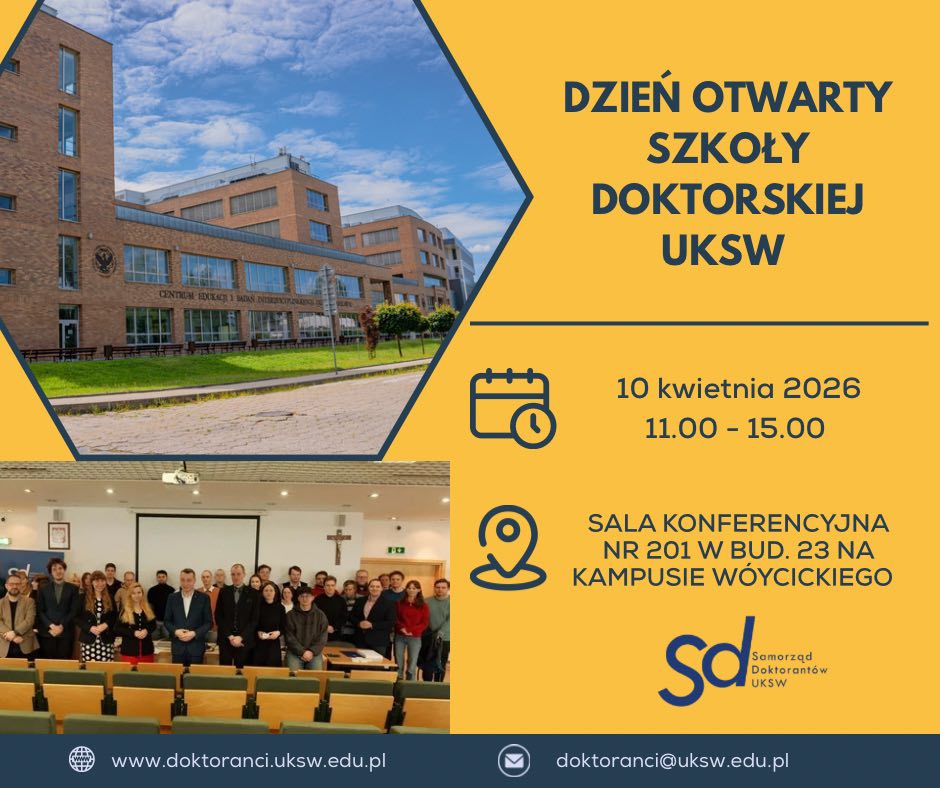 Już 10 kwietnia 2026 r. serdecznie zapraszamy do udziału w trzecim w historii Dniu Otwartym Szkoły Doktorskiej UKSW.
