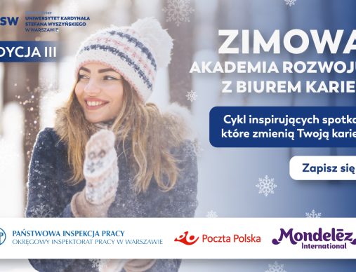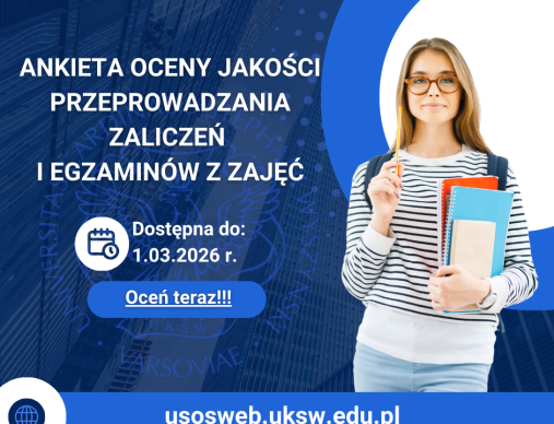 Zimowa Akademia Rozwoju z Biurem Karierem UKSW Zapraszamy wszystkich studentów i absolwentów UKSW do uczestnictwa w cyklu trzech… Ankiety oceny jakości przeprowadzania zaliczeń i egzaminów… Droga Studentko, Drogi Studencie! Masz 2 minuty? Zostaw opinię o tym, jak przebiegają… Dyżur Prodziekana ds. studenckich przeniesiony na 30… Uprzejmie informujemy, że dyżur Prodziekana ds. studenckich dr. Rafała Soleckiego… Zachęcamy do wypełnienia ankiet oceny zajęć dydaktycznych… Drogie Studentki, Drodzy Studenci! W systemie USOSweb (zakładka: Dla studentów… Godziny pracy dziekanatu w dniu 18 grudnia 2025 Uprzejmie informujemy, że w związku z uniwersyteckim spotkaniem wigilijnym dziekanat… 12…10